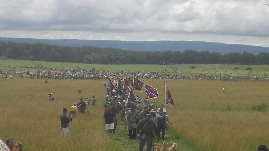 Confederate arrive at the Angle on Cemetery Ridge on July 3, 2013