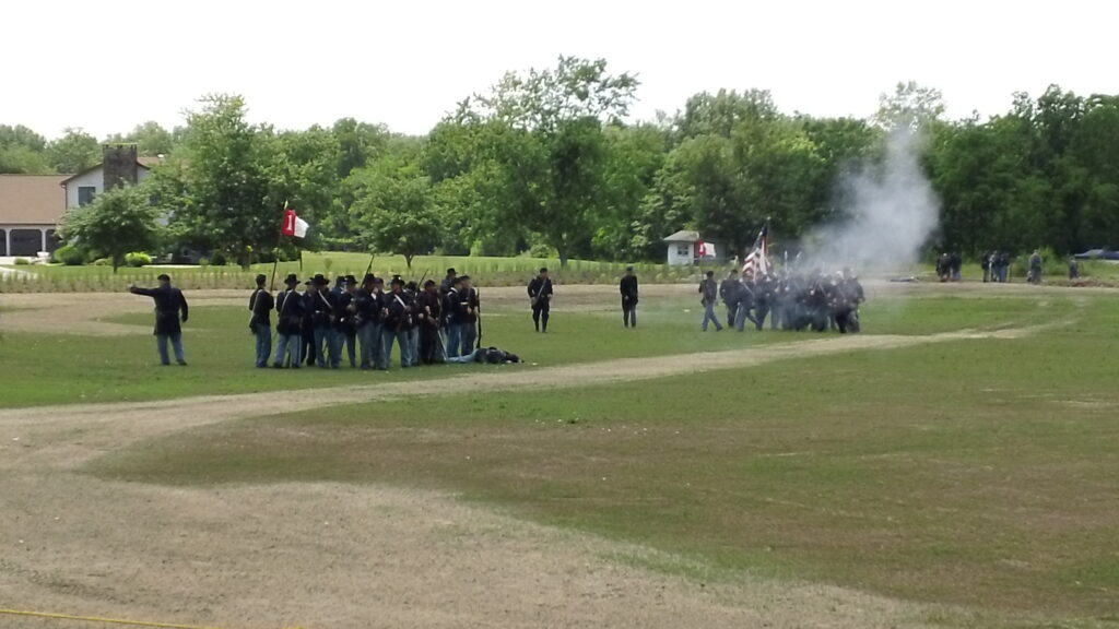 Union regiments doing a firing re-enactment with Confederate skirmishers on the lawns of the Lutheran Seminary on the morning of July 1st. There was also a few cannons here that were used in the re-enactment.
