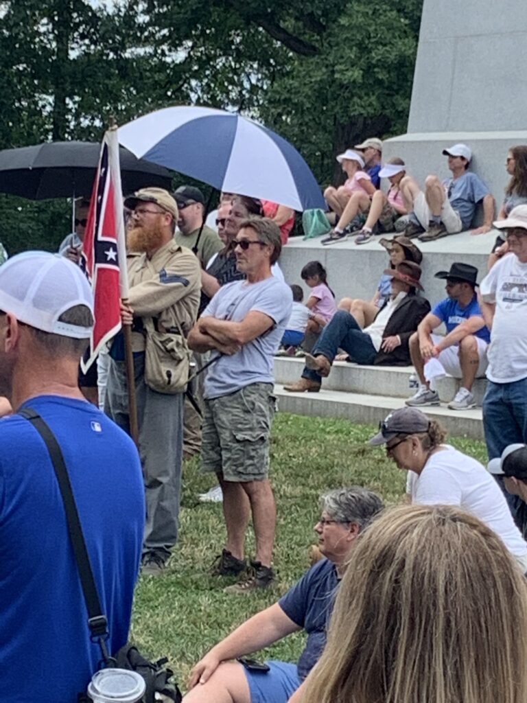 Here’s a closer look as he talks to the crowd. Notice that no one is going up to him for an autograph, but more listening to him talk about the history and the civil war.
