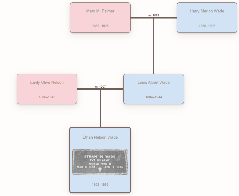 Jennie’s youngest brother, Harry Marion, was only seven or eight years old when his sister suddenly left this life. He would grow up, move westward and find love in Denison, Iowa. Harry would marry Mary in Denison in 1879, and have one son. Harry would not meet his grandson in this world, but his wife did. Ethan Nelson Wade fought in World War II. He never married, but what’s interesting is that all five of these individuals are buried in the Mount Pleasant Cemetery outside Seattle, Washington.