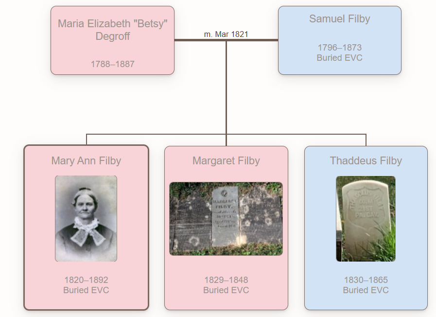 The family tree that extends into the 21st century all begins here. Maria and Samuel would have two daughters, one being Mary Ann Filby. Thaddeus was born on Halloween in 1830. Prior to the civil war, he was a carpenter around town before marrying his wife, Harriet. He married his wife, Harriet, and welcomed a daughter in 1860 named Clara. Not a good thing to start a marriage with, but Thaddeus was incarcerated and thrown into the Adams County Jail after assault and battery chargers were found guilty in January 1862 against his wife. He was in jail for 3 months.