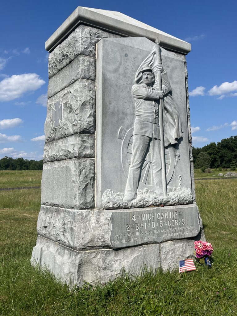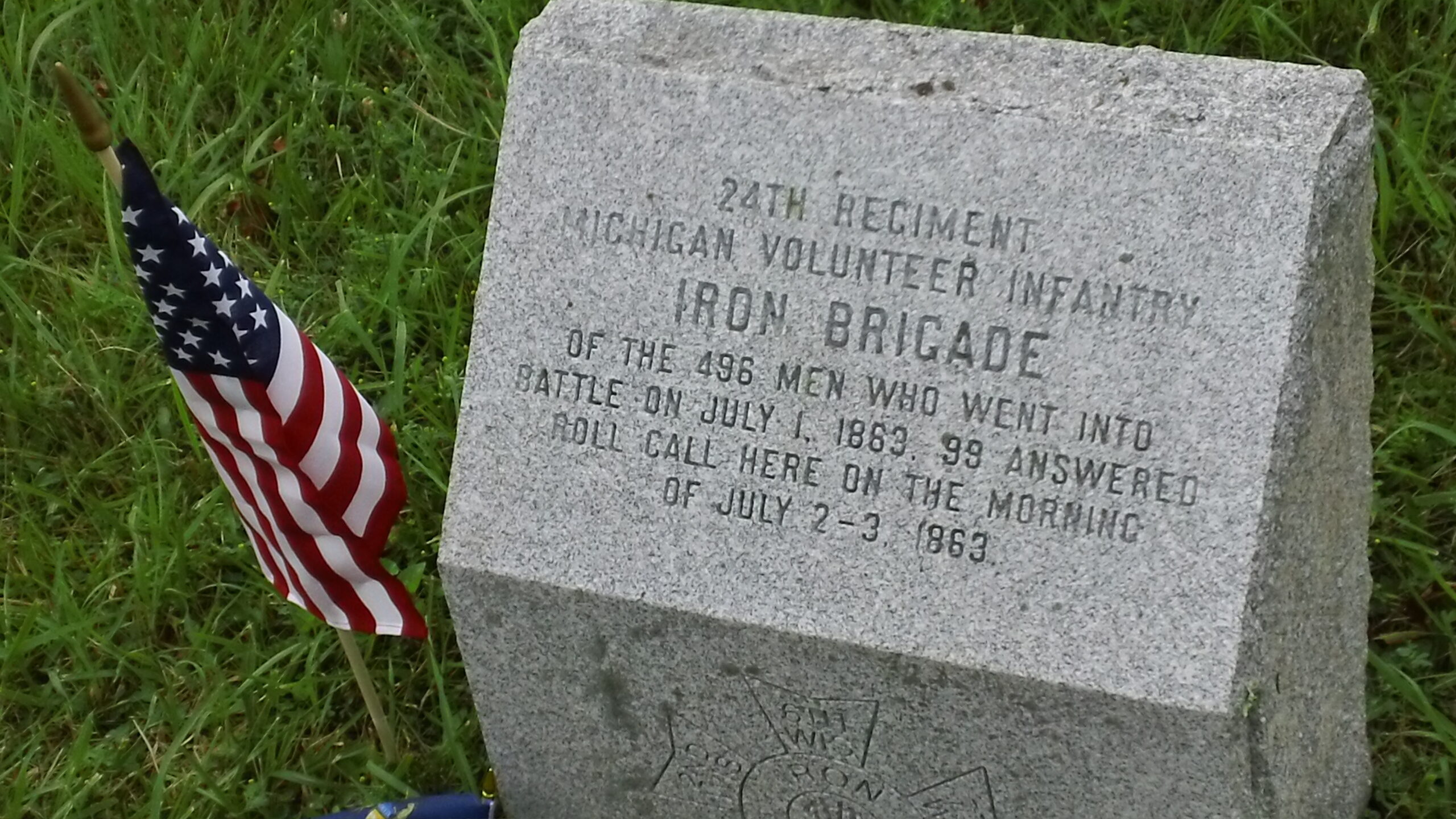 " Private William Kelly saw his colonel with the flag and took it from him, saying, “the Colonel of the Twenty-Fourth Michigan shall not carry the colors while I am alive.” The angel of death found Kelly quickly and in a moment he lay at Col. Henry Morrow’s feet, dead. At this point, the eighth (if Colonel Morrow’s brief tenure as color bearer is counted) man to carry the 24th’s colors, Private Lilburn A. Spaulding, claimed the flag. "