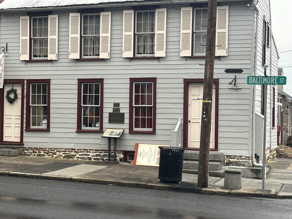 Three months later, Mrs. Wade gave birth to their first daughter, Georgianna “Georgia” Wade. She was born at 242 Baltimore Street, which still stands today in 2025. This house is seen at the top of this page. Georgia would watch her sister, Mary Virginia “Jennie” Wade be born in the same house on May 21, 1843. Another one of their siblings would be born at the same house three years later in 1846, John James “Jack” Wade. The family starts to expand in numbers, but the house seems to be getting smaller. Another daughter is born, however, she only lives four months before passing away. Her name was Martha Margaret Wade. With the sadness in the house after a death, the family moves down the street, literally, to 49-51 Breckenridge Street. The 1850 Gettysburg census shows that Georgianna: 9, Jennie: 7, John James: 4, Samuel Swan: Baby, and the parents reside at the house on Breckenridge Street, which is a few houses west of Tillie Pierce and Shriver households.