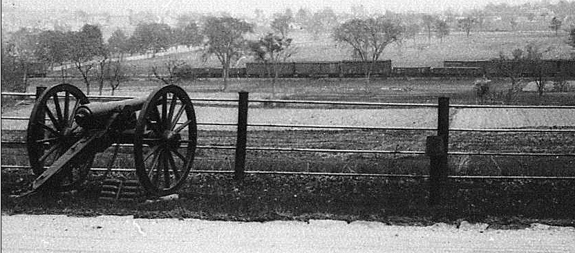 The green line continued behind the McMillian House and move across the grounds of Pickett’s Charge. The photo below shows boxcars on at least two different lines.