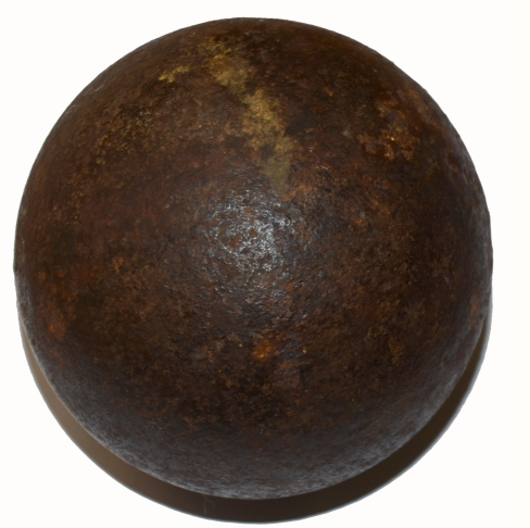 Another 6-pound solid shot was recently sold in October 2025 from an online auction for $8500. This shot was found on the battlefield wedged into a stone chimney while the house was being torn down around 1920. The smoothbore shot is approximately two inches in diameter. Below is the picture of this cannonball.
