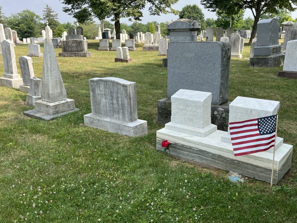 You can find most of the Thorns resting with their parents Peter and Elizabeth within Evergreen Cemetery.